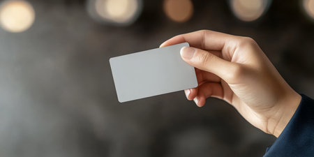 Hand holding a blank business card