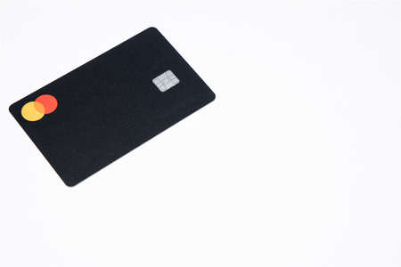 macro photo of a bank card with the logo of the international payment system MasterCard Incorporated on a white isolate 11.14.2020 in Russia, Kazan, st. Spartakovskaya 88b.