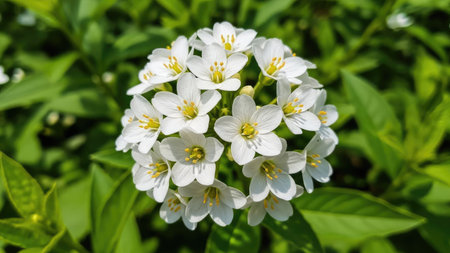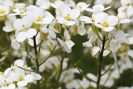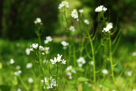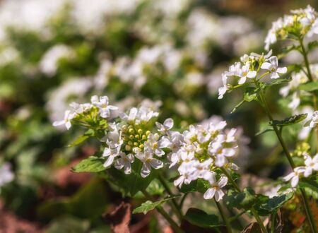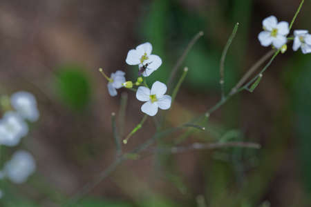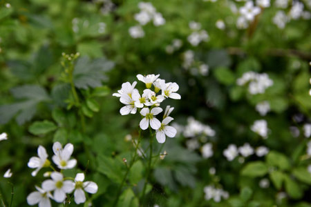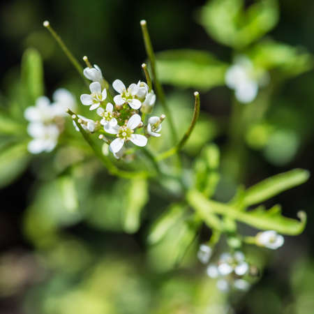 White flowers of Cardamine plant close up