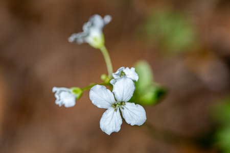 Cardamine trifolia flower growing in mountains, macro