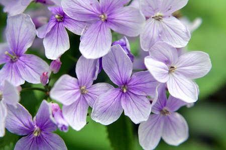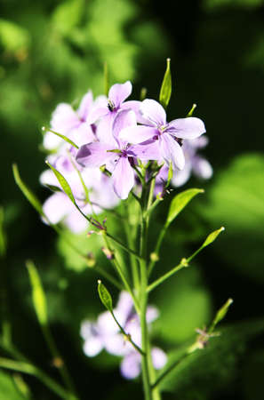 Lunaria rediviva, known as perennial honesty. Beautiful light purple flowers in bloom.