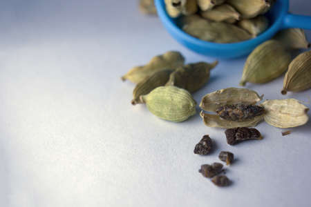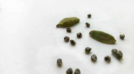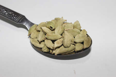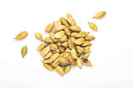 Best cardamom, Siam Cardamom or Kapulaga on white canvas background. Dried seeds, dried herb spice.
