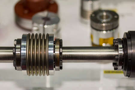 Macro close-up CV joint new with copy space on gray background. Shallow depth of field new metal detail. Background new spare parts