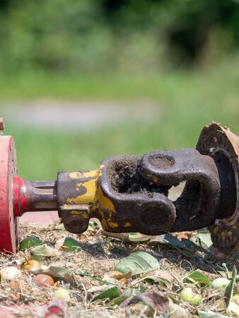 Old drive shaft, propeller shaft and universal joint of tractor.