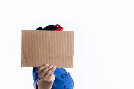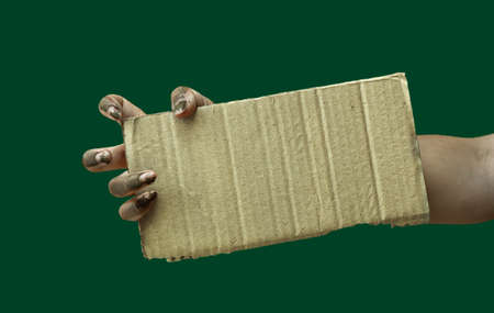 Protest , Mob or Expression Concept. Person Raised a Blank Corrugated Paper. Template Texture Background. Front View and Dark tone
