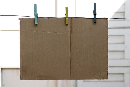 metal line hold an cardboard with colorful clothespins