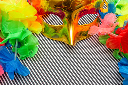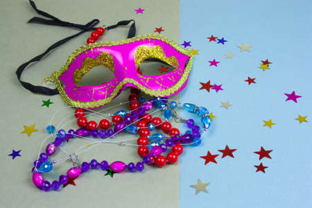 Top view image of masquerade mask background. Flat lay. Purim celebration (jewish carnival holiday). virus prevention concept, medical mask