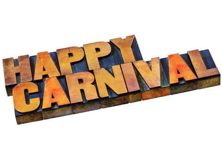 happy carnival word abstract - isolated text in letterpress wood type printing blocks stained by color inks