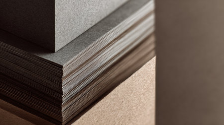 Textured sheets of gray and brown paper stacked neatly, highlighting their crisp edges and inviting creativity in design and art projects.