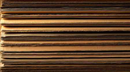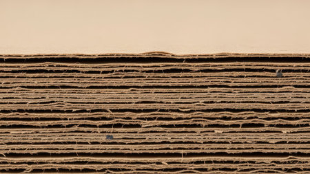Macro shot of stacked cardboard and paperboard edges creating layered stripes, perfect for logistics, packaging design, and eco concepts.