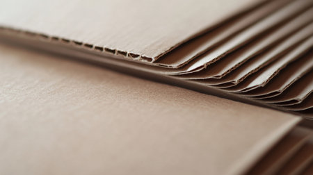 This macro shot showcases the textured layers of corrugated cardboard against a soft background, highlighting its unique structure.
