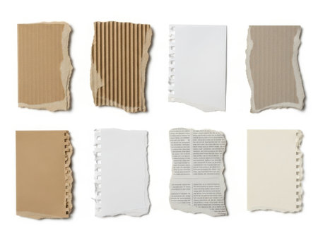 collection of various ripped pieces of paper on white background. each one is shot separately
