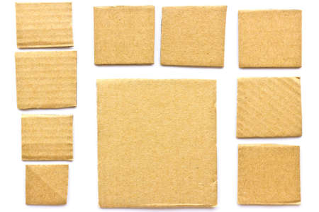 Brown beige and brown corrugated cardboard paper pieces, isolated on white background