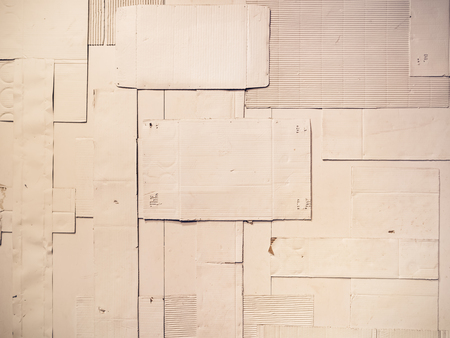 Background and Different texture of the old corrugated cardboard on the wall. Layer of brown packing and recycle paper. Scrap and patch of corrugated paperboard with copy space