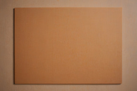 A rectangular piece of brown cardboard against a red background. Copy space for text and design elements. top view.