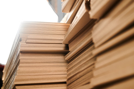 Stacks of thick paperboard await transformation into durable cardboard boxes for various applications in manufacturing and packaging