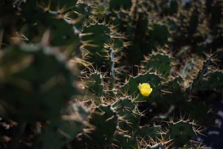 Yellow flower of prickly pear cactus or Opuntia ficus-indica