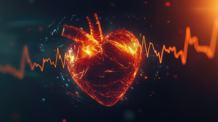 An energized heart combined with a pulse line creates a striking visual representation of love, vitality, and emotion, rendered in a contemporary abstract art style.