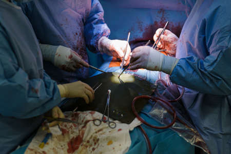 Team of surgeons in hospital coronary artery bypass grafting for open heart surgery