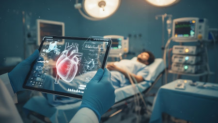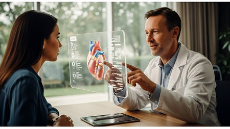 Cardiologist examines patient heart following heart attack using magnetic resonance imaging CT 3D scan in intensive care unit Generative AI