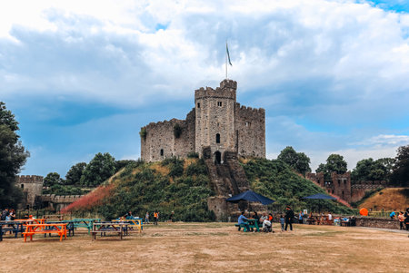 Cardiff, United Kingdom - August 15, 2022: The famous castle in Cardiff, Wales