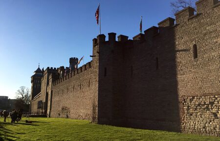 Walls of Cardiff Castle in Cardiff in Wales of the United Kingdom. Cardiff is the capital of Wales.