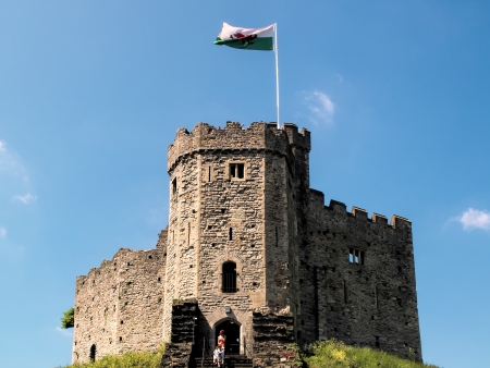 Cardiff / UK - 30 Jul 2013: The medieval Cardiff Castle in Wales
