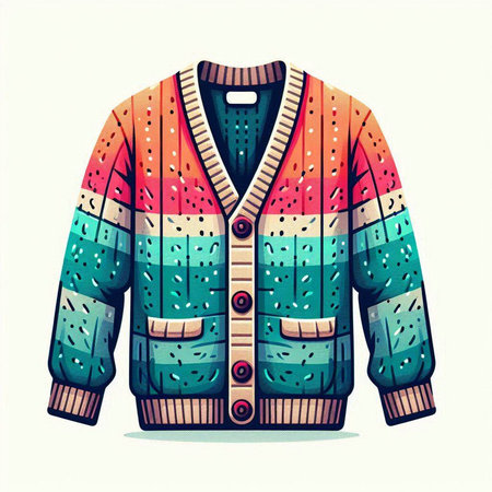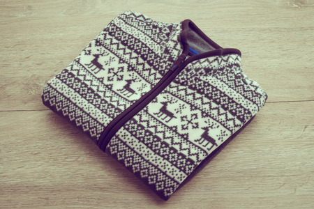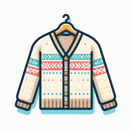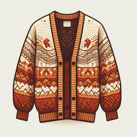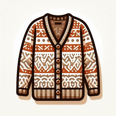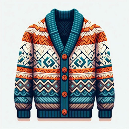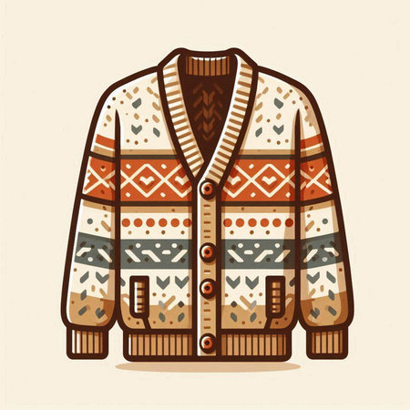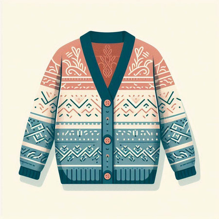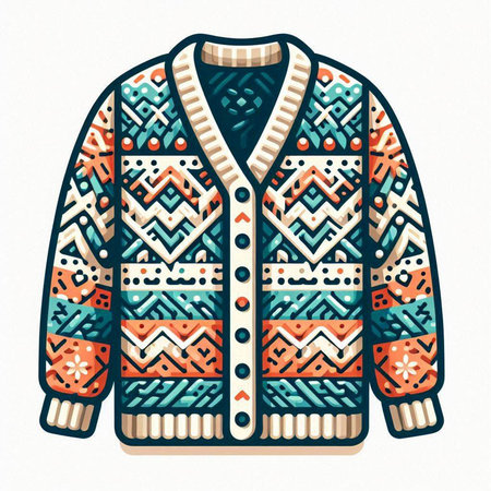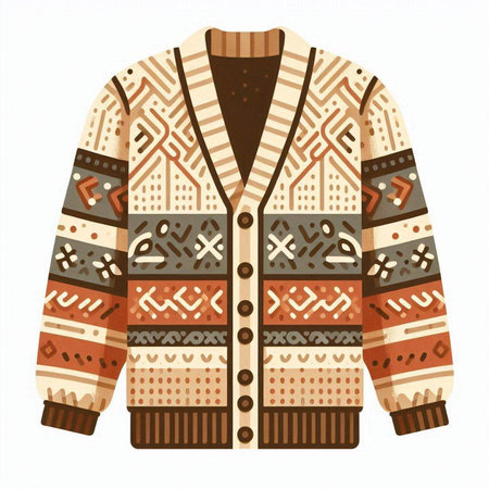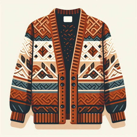 Vector illustration of a warm knitted jacket with a pattern in ethnic style.