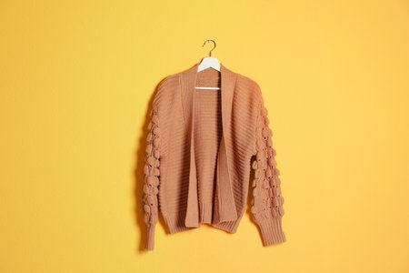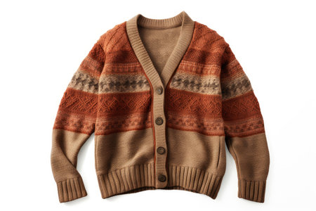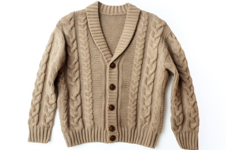 the cardigan, a classic winter fashion staple, is beautifully showcased against a crisp white background, highlighting its soft texture and cozy appeal, perfect for casual everyday wear or layering under jackets and coats on chilly days. ai generated