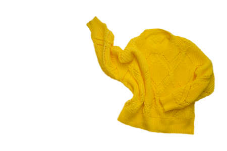 Stylish warm plain brown sweater on a white background. Cozy knitted things, clothes.