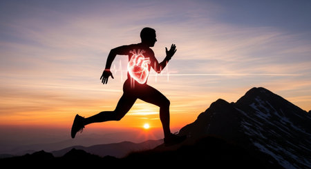 a person monitoring their heart rate, perhaps with a wearable device or by placing their fingers on their pulse, symbolizing the importance of cardiovascular well-being