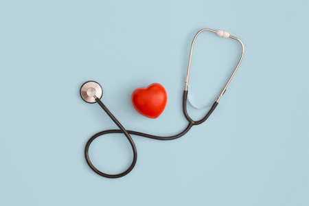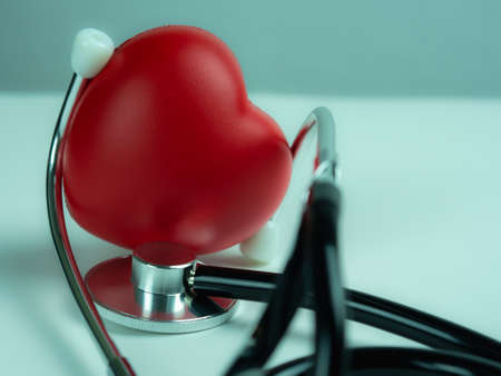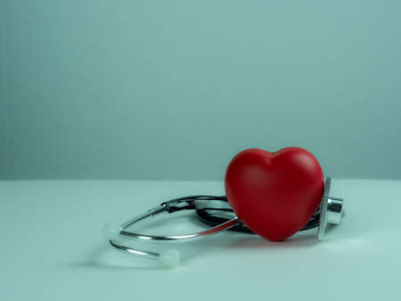 Red heart with stethoscope, heart health, health insurance concept, World heart day, world health day