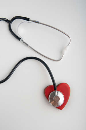 Red heart with stethoscope close up on white back ground, heart health, heart disease, health insurance concept, world health day, doctor days.