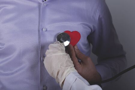 healthy concept; Doctor checking patient's heart with stethoscope at a hospital