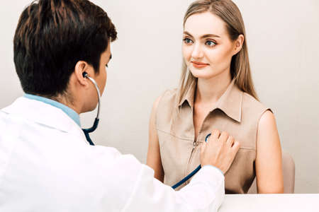 Doctor examining female patient with stethoscope in the hospital.healthcare and medicine