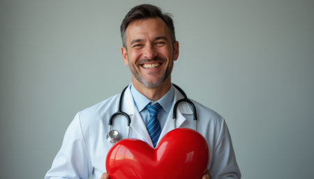 Smiling doctor holding a heart-shaped model