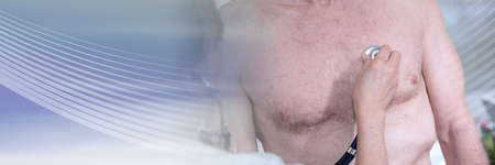 healthy concept; Doctor checking patient's heart with stethoscope at a hospital
