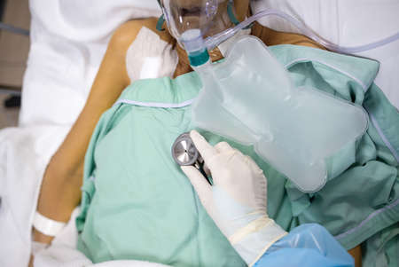 Doctor using the ball resuscitation with a patient in the hospital