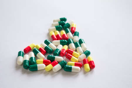 Colorful of antibiotic capsules pills isolated on white background, drug resistance concept