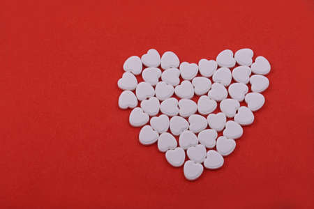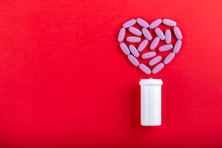 Heart shape from heart pills, Heart shaped pills on a red background. Medicines that help people.