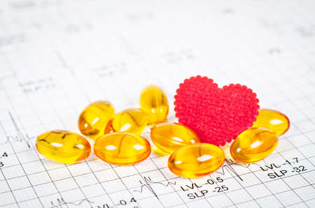 Vitamins Heart and with red heart on cardiogram report paper background.