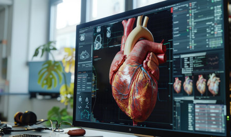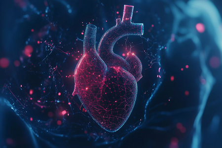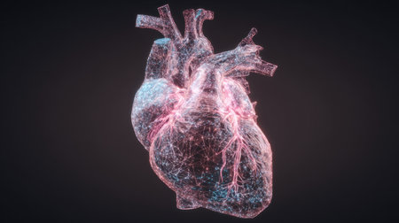 This image showcases a stunning digital model of a heart, featuring glowing lines and an abstract design that highlights scientific and medical themes.