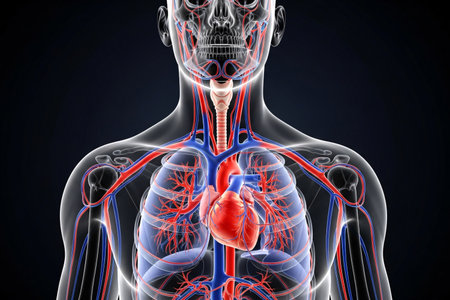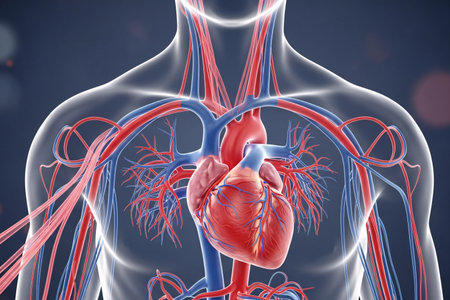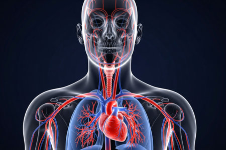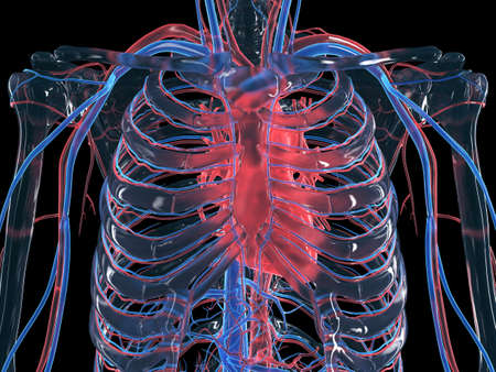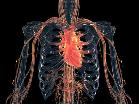 3d illustration of human heart anatomy with visible blood vessels and vessels