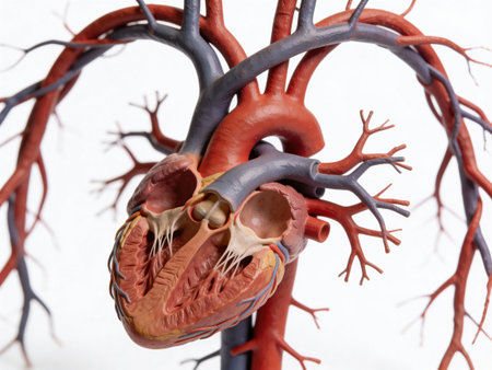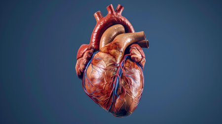 Close-up of a human heart with intricate blood vessels