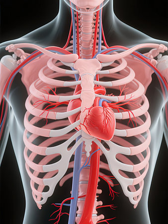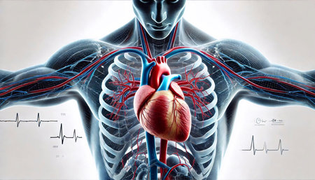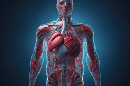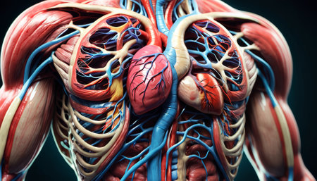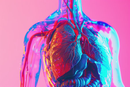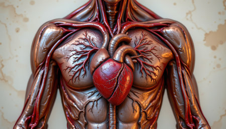 Anatomical Model of Human Heart and Circulatory System, Detailed Representation of Human Body Anatomy, Artistic Medical Visualization for Educational Purposes