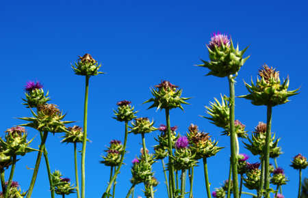 Artichoke (Cirsium vulgare) flowers in bloom