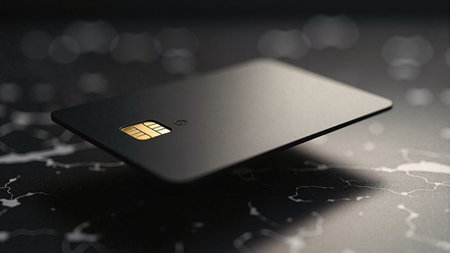 Black credit card with chip macro shot