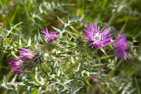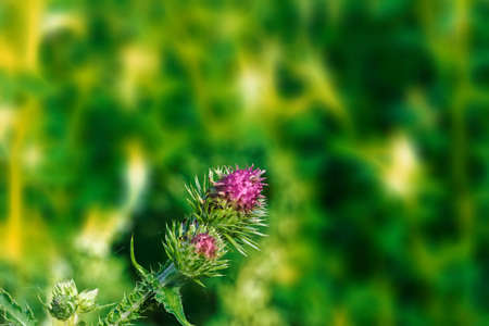 Milk Thistle (Cirsium vulgare) blooming in the field