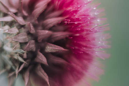 Thistle close up. Beautiful purple thistle flower. Pink flower burdock. Burdock flower spiny close up. Flowering medicinal plants are thistle or milk thistle.