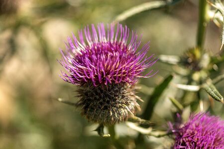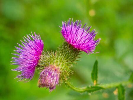 Cirsium vulgare, purple thistle flowers in bloom